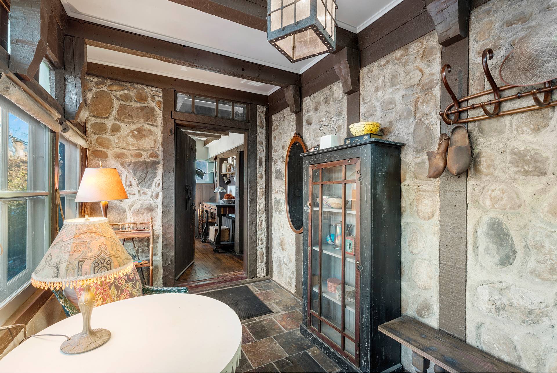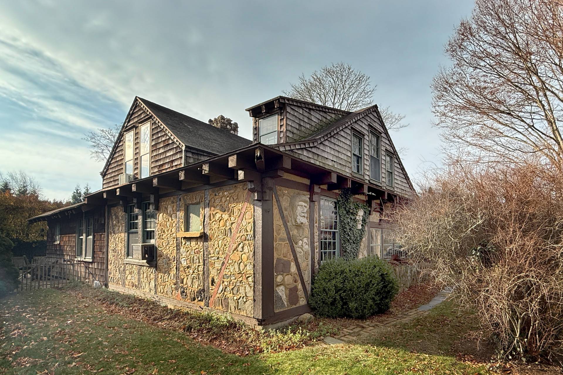 Own this rare 'Half-timber" home right out of the Cotswolds. Built between 1909 and 1912 by local craftsman Julius Imer the home incorporates salvaged ship timbers along with local stone and artifacts, 10 John Street located just off Elm Street in the Southampton Village Historic district this is truly one-of-a-kind, Stone floored entry foyer leads to a richly finished wood interior, foyer with rustic stair, thick hand-crafted doors opening to great room with stunning rustic stone fire hearth. first floor primary bedroom with breakfast porch and ensuite bath, dining room with second fireplace, rustic kitchen with Viking appliances including laundry, pantry and half bath. A back stair provides an alternate access to the second floor with a meandering hall that leads to five bedrooms, multiple alcoves and one full bath. The shy quarter acre lot has a large open lawn with western and southern exposures with room for pool. Detached garage, outside shower and driveway for off street parking.Listing ID: 928024